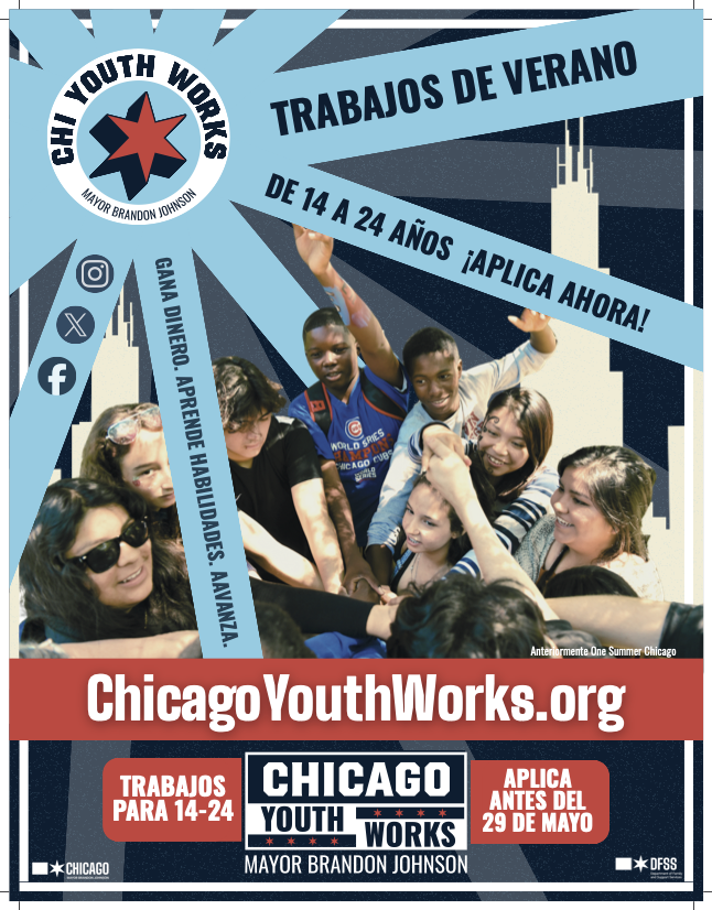 Los residentes de Chicago de entre 14 y 24 años pueden obtener más información y presentar su solicitud en ChicagoYouthWorks.org. Presenta tu solicitud antes de la fecha límite del 29 de mayo.