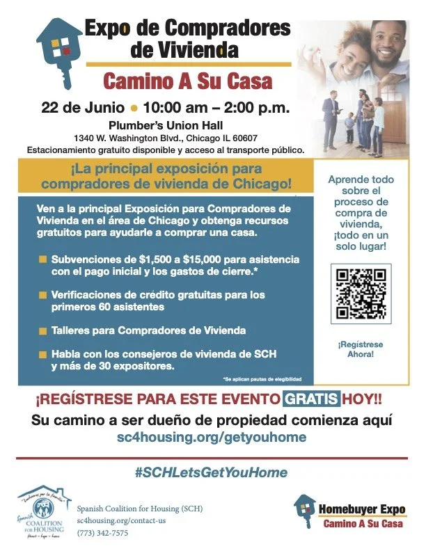 La Coalición Española para la Vivienda es el anfitrión de una Expo Homebuyer el sábado, 22 de junio de 10am a 2pm en el Salón del Sindicato de Fontaneros, 1340 W Washington Blvd. Regístrese en sc4housing.org/getyouhome.