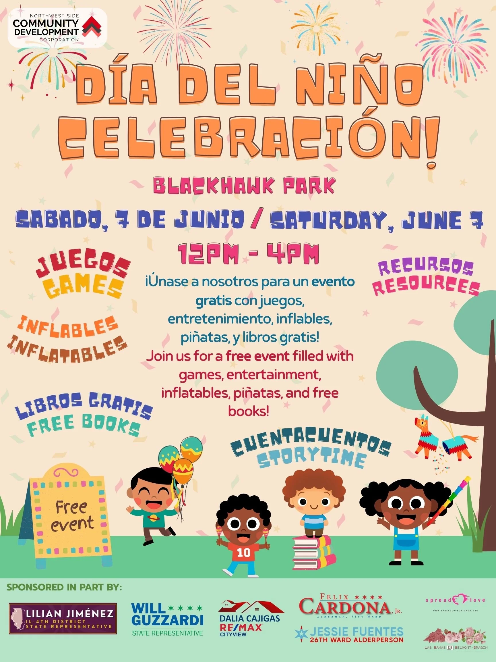 Northwest Side Community Development Corporation’s Día del Niño celebration is on Saturday, June 7, from 12 to 4pm at Blackhawk Park, 2318 N Lavergne Ave. There will be games, piñatas, books, and so much more!
