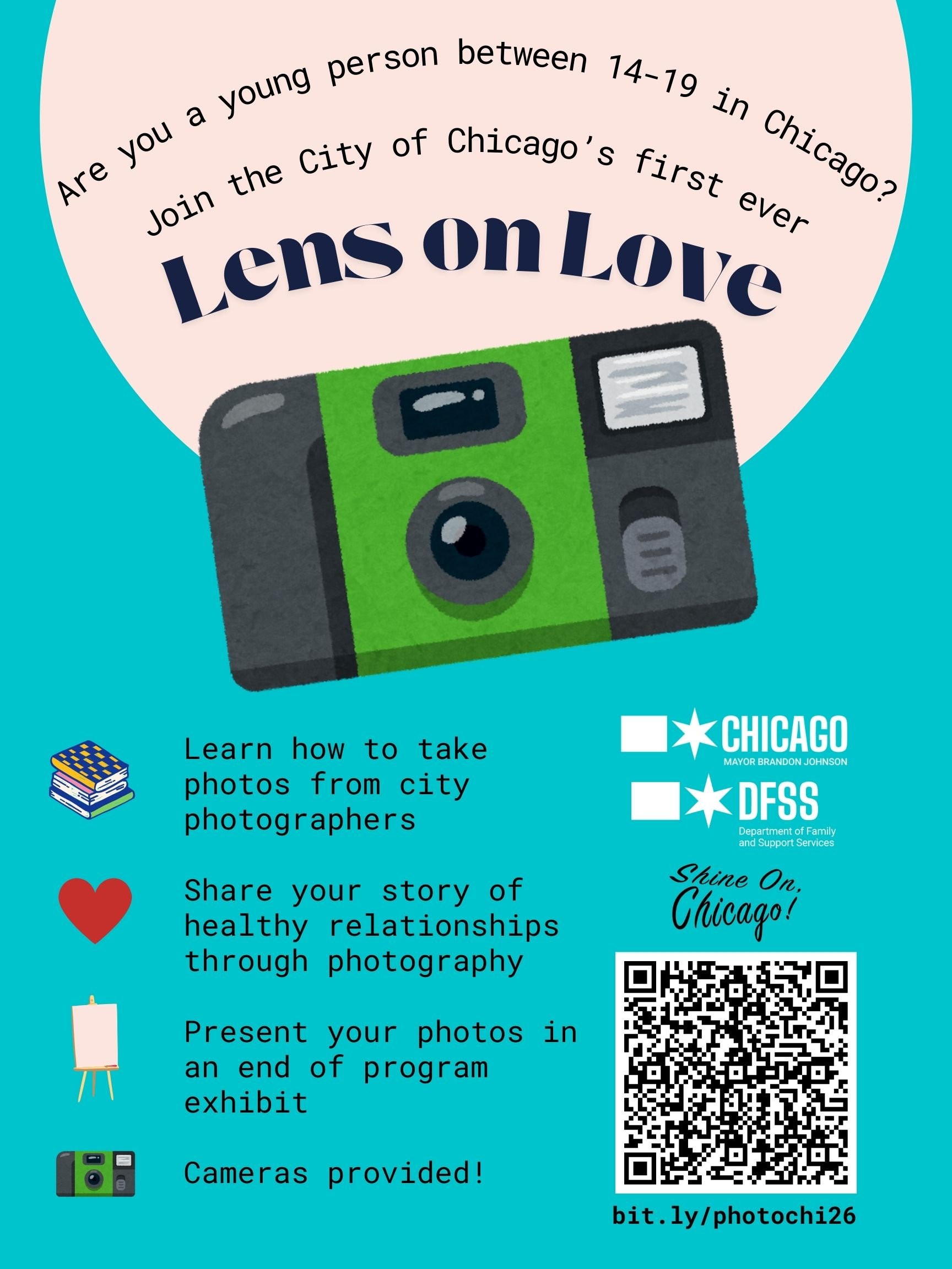 From February to April 2026, The Mayor's Office of Chicago is inviting young people ages 14-19 to tell their stories through photography in celebration of Teen Dating Violence Awareness Month.
