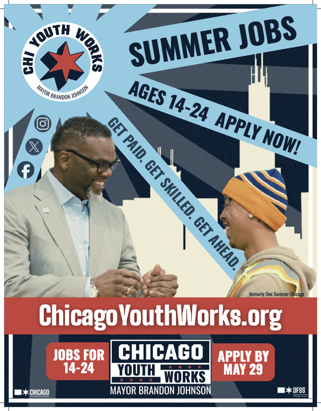 Chicagoans, ages 14-24, can learn more and apply at ChicagoYouthWorks.org. Apply before the deadline on May 29.