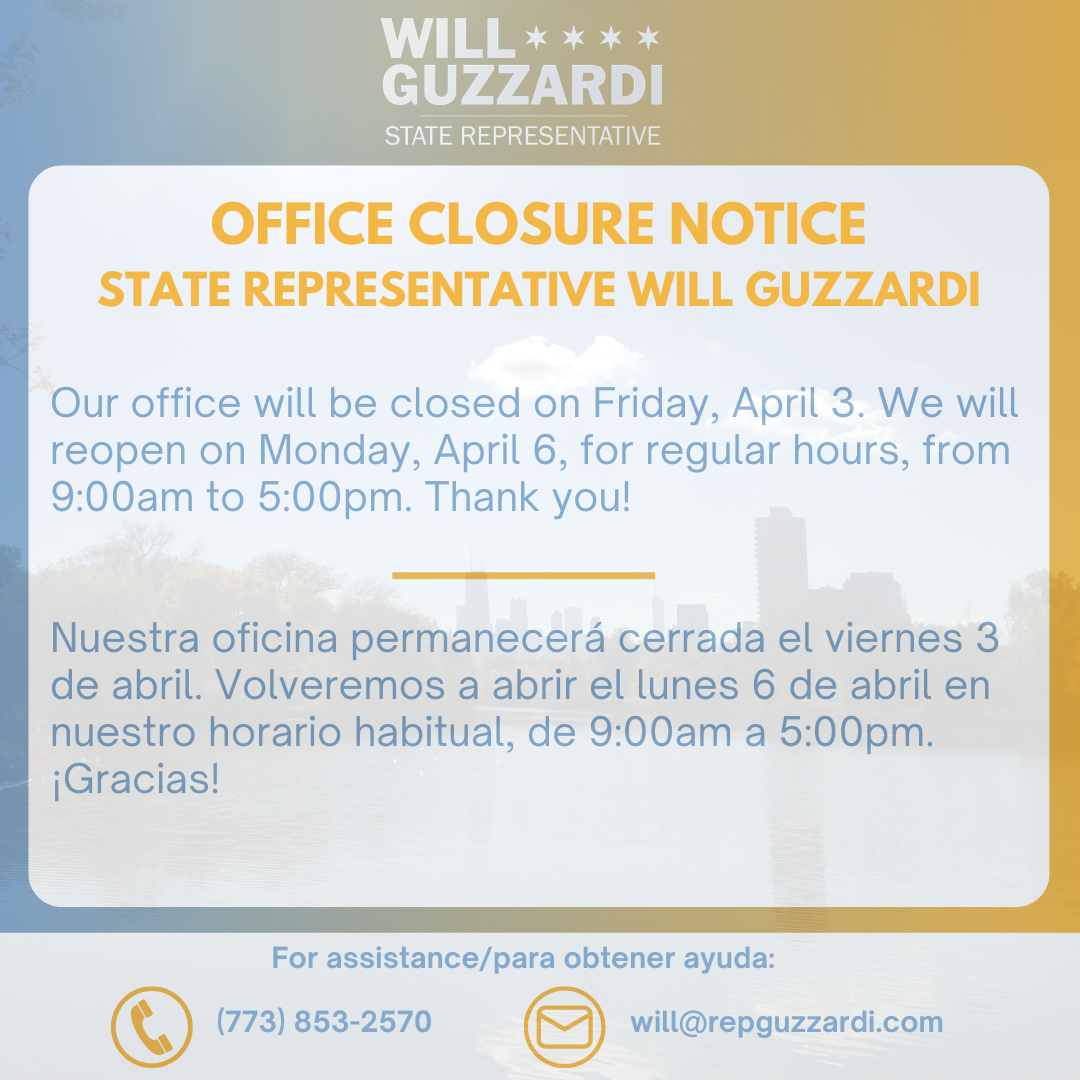 Please contact us at (773) 853-2570 or at will@repguzzardi.com for assistance. Thank you!