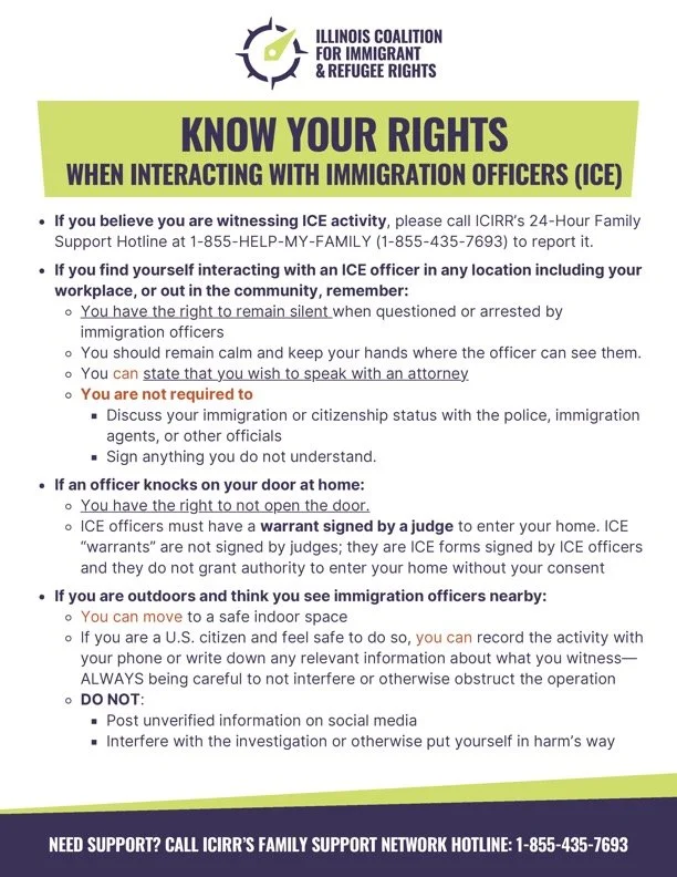 In closing, we encourage community members to report any possible ICE sightings by calling ICIRR’s Family Support Network hotline at (855) 435-7693. You can access various immigration resources at bit.ly/nwsresources, and you can also reach out to my office—we are happy to help connect you to organizations and services for support.