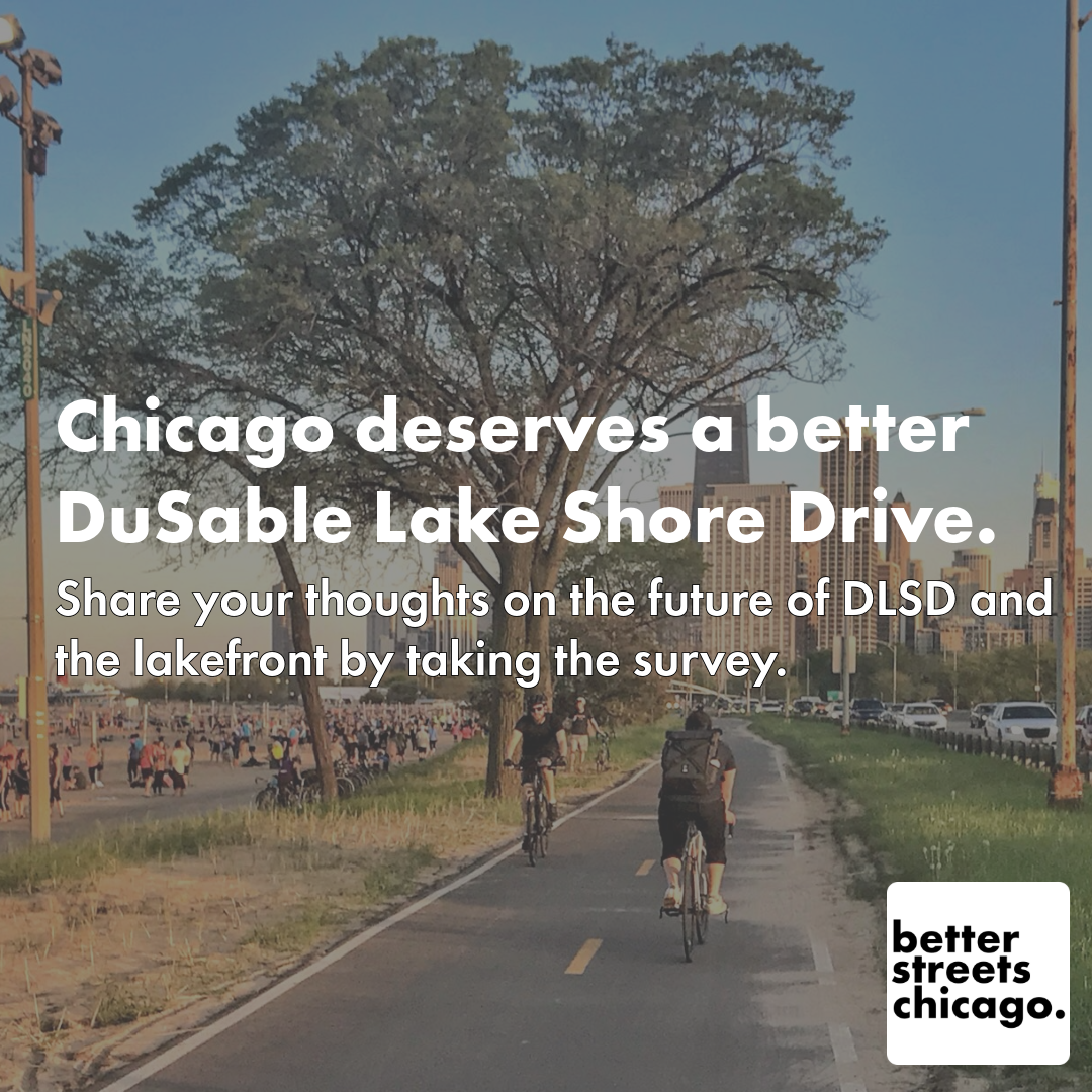 Better Streets Chicago wants to learn more about the public’s thoughts on the future of DuSable Lake Shore Drive and the lakefront. This 15 minute survey asks about Chicagoans’ transportation habits, relationship with the lakefront parks, and our collective vision for the future of DLSD and the lakefront. All responses remain anonymous and the results will be used by Better Streets Chicago as part of their ongoing advocacy supporting an alternative vision for DLSD. You can access the survey in English or in Spanish.
